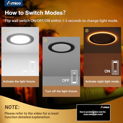 Synchronization Reset Function: Our black led recessed lighting with night light have synchronization reset function, every time when you turn on the downlight, it will always been downlight mode. Sometimes the lights get out of sync after installation. Please after turning off the light for five seconds, turn on again, then the synchronization will be done.