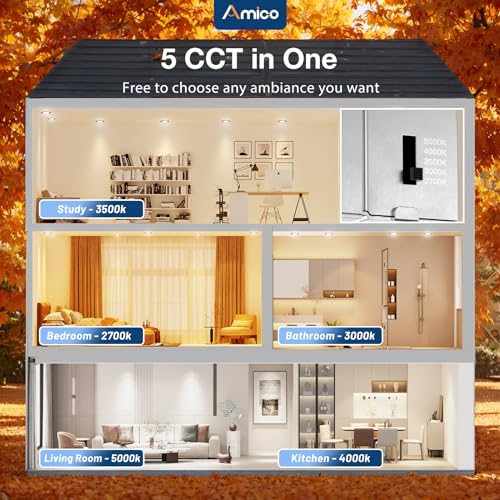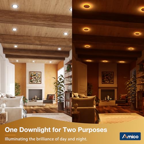 Night light Feature: Amico 4 inch black led recessed light with night light emits 2000K amber for very soft illumination and added ambiance. It also can provide no-glare lighting when you wake up at night which is very convenient.