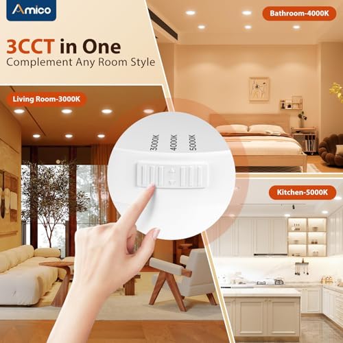 Wide Application: Amico retrofit downlights are damp-rated and can be installed in bedrooms, living rooms, kitchens, and hallways, in addition to bathrooms. A wide range of applications saves the trouble of picking multiple lights.