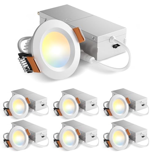 Amico 6 Pack 2 Inch 5CCT Ultra-Thin LED Canless Recessed Ceiling Light with Junction Box, 2700K/3000K/3500K/4000K/5000K Selectable, CRI90+, 6W=40W, 350LM, Dimmable Canless Wafer Downlight-ETL&FCC
