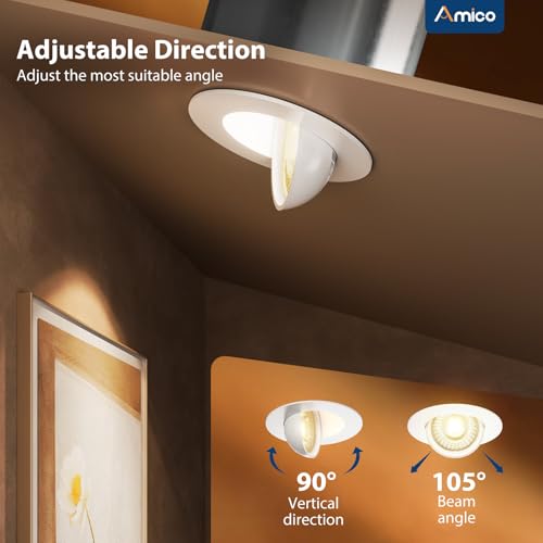 90° Adjustable Angle: Amico 4 inch gimbal can lights provide 90°vertical tilt. This makes it easy to adjust the light direction to meet any lighting scenario, whether highlighting artwork or illuminating specific areas.