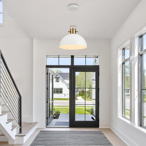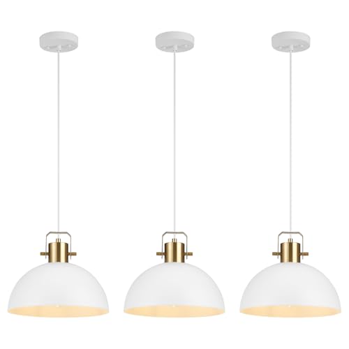 [Unique Farmhouse Design]:This white pendant light fixtures is made (matte white) dome lampshade,Incorporating vintage design styles to give the fixtures a more aesthetic look.suitable for kitchen islands,over sink,dining room,bed room
