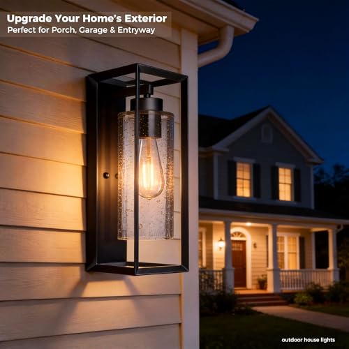 Outdoor Rated & Weather Resistant: Built with durable metal construction and clear Seeded glass shade, this outdoor wall light is designed to withstand rain, humidity, and changing outdoor conditions for long-term exterior use.
