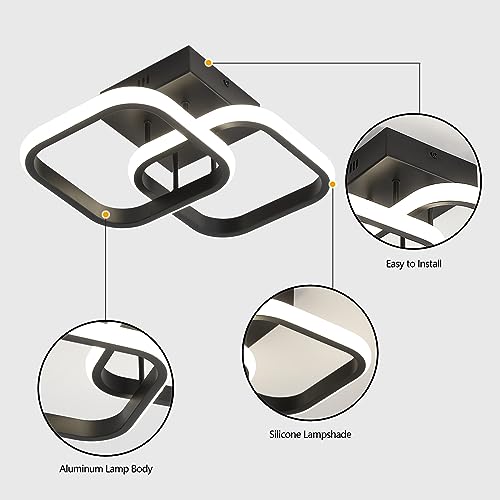 Perfect Design:Black Modern ceiling light fixture uses two simple black square designs, the Angle of the two squares of the led ceiling light overlap together, adding a three-dimensional beauty to the hallway light fixtures. The modern led ceiling light black design adds the features of modern light fixture and industrial light fixture.