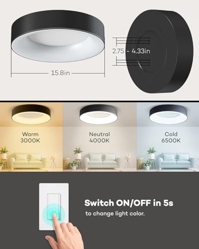 Wide Application: This 15.8 inch flush mount light fixture needs to be hardwired, easy to assemble with detailed installation instruction. The unique and simple appearance design is suitable for all types of rooms. You can add this stylish ceiling lamp at home or office. Great for bedroom, dining room, study room, living room, hallway, office etc