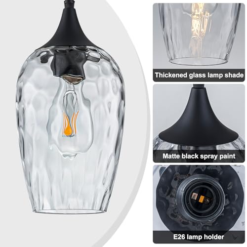 Fits Your Ceiling: This black pendant light with a 59-inch adjustable cord, the cord length can be easily adjusted to fit ceilings of different heights. pendant lights for kitchen island, sink, dining room, bedroom,The kitchen island lights can also be hung at an angle to accommodate sloping ceilings