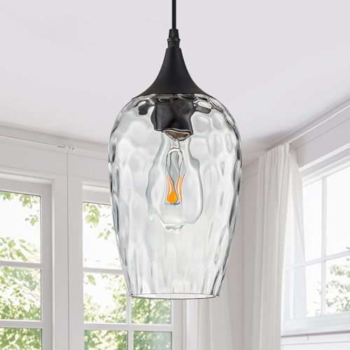 Hand-Blown Glass Pendant Light: The glass pendant lights with the hand-beating process to produce a hammered clear glass lampshade, each product is individually mouth-blown and hand finished by skilled craftsmen. Unique vase shapes add elegant modernity and sophistication to your room
