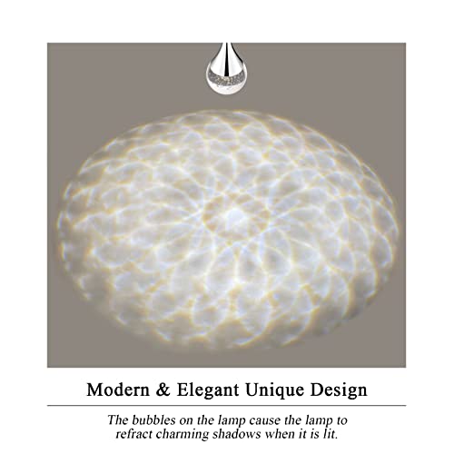 ?Unique Design?With bubble crystal glass, when the chrome pendant light is turned on, the whole lampshade will emit a beautiful and non-dazzling light, bright and very charming. This bubble pendant light is creat for indoor decor, adding a modern factor to your home.