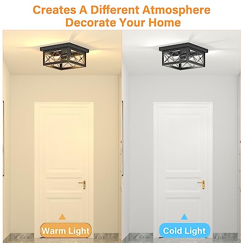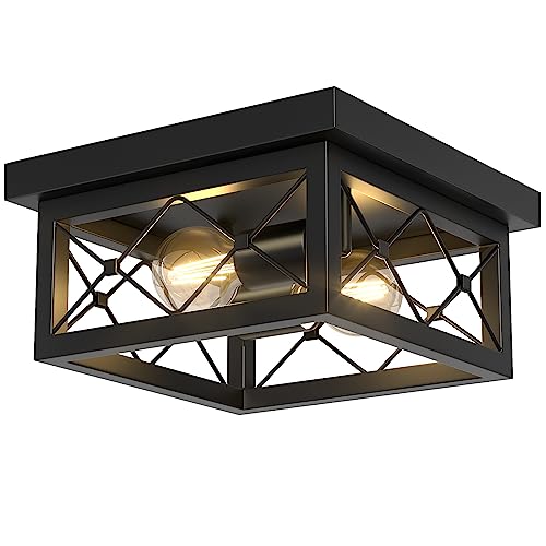 ?Extremely Elegant Appearance?: This black flush mount ceiling light has simple but artistic look, perfectly built with square metal frame in black finish, creates a retro and modern industrial style feeling, exudes a charming artistic atmosphere. Due to the open cage design, with no glass shade, the light fixture is easy to clean and change the bulbs.