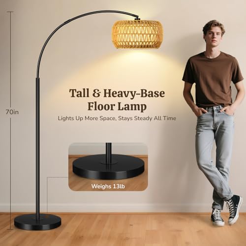 Extra Tall & Stable Base?Unlike ordinary floor lamps, Our floor lamps for living room has a height of 68 inches, providing sufficient lighting for the entire space. The heavy-duty weighted base (7.7 lbs) ensures the lamp stands firmly and won't tip over easily, even if accidentally bumped by kids or pets.