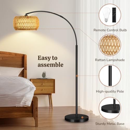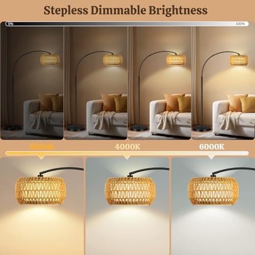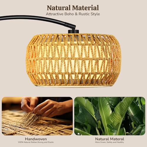 3-in-1 Boho Floor Lamp?This arc floor lamp comes with rattan lampshade and fabric lampshade, allowing you to freely assemble 3 unique styles - single rattan shade for natural rustic charm, single fabric shade for soft warm ambiance, or double shades (rattan outside + fabric inside) for layered bohemian vibe.