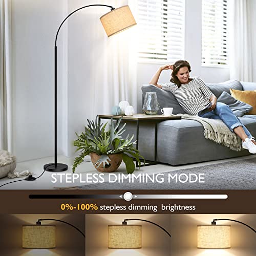 Arc Floor Lamps for Living Room, Modern Remote Control Standing Lamp with Stepless Dimmable, Black Tall Floor Lamp,Over Couch Arched Reading Light for Bedroom, Office(Bulb Included)