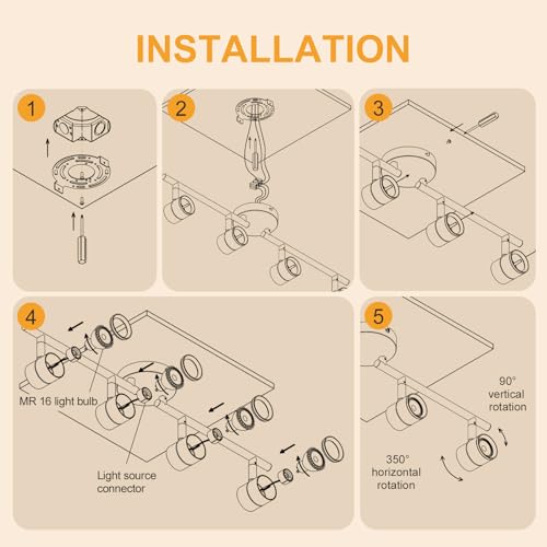 ?Flexible Track Lighting?: Multiple angles with 90° vertical rotation and 350° horizontal rotation by their flexibly rotatable light heads and 270° foldable arms. They can be widely used in stores, coffee shops, book stores, living rooms, drawing rooms, and make the installation easier.