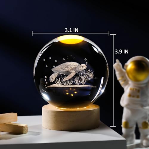 ?Wooden Base?The sea turtle crystal ball is equipped with a 5cm wide wooden base. It can emit warm light, bringing a warm and dreamy atmosphere to your home. Size of these crystal ball is 3.1×3.1×3.9 IN.