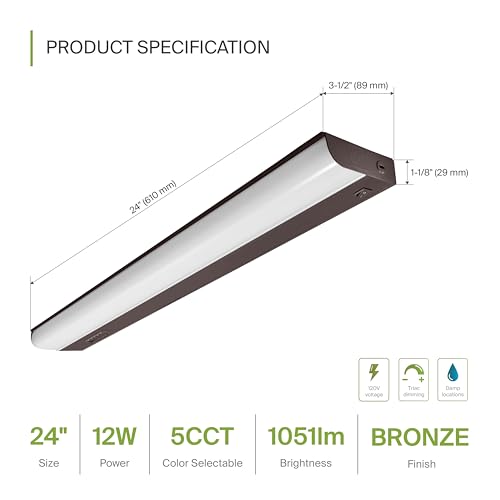 5 COLOR TEMPERATURES - These hardwired LED under cabinet lights have a slide switch that allows you to select from 2700K soft white, 3000K warm white, 3500K neutral white, 4000K cool white, or 5000K daylight color temperatures. Delivers bright, even illumination up to 1051 lumens