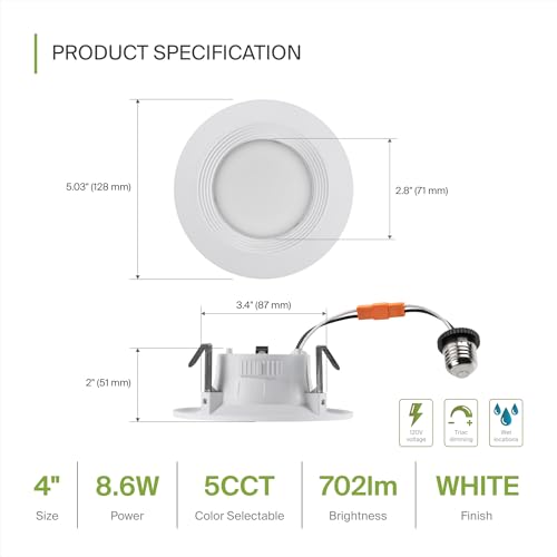ADVANCED DESIGN. The ASD 4 Inch LED recessed lights retrofit kit features a classic, low-profile design with a baffle trim for a clean, stylish look and efficient lighting. Smooth TRIAC dimming from 10% to 100% with modern LED dimmers lets you easily adjust the ambiance. A 95° beam angle and CRI90+ provide soft, even illumination. CCT selectable with a simple switch between 2700K, 3000K, 3500K, 4000K, and 5000K.