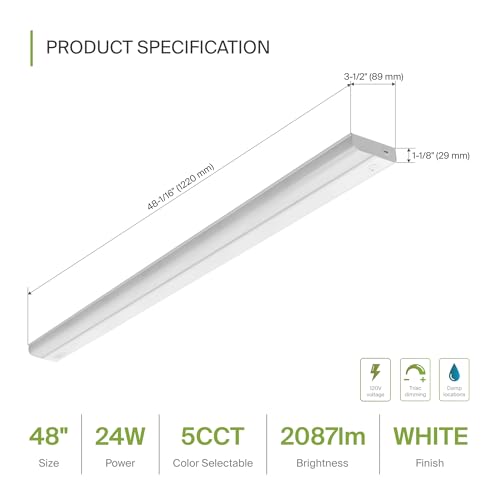 5 COLOR TEMPERATURES - These hardwired LED under cabinet lights have a slide switch that allows you to select from 2700K soft white, 3000K warm white, 3500K neutral white, 4000K cool white, or 5000K daylight color temperatures. Delivers bright, even illumination up to 2087 lumens