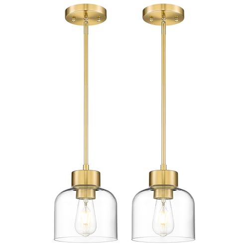 Audickic 2-Pack Pendant Lights Kitchen Island, 7" Brushed Gold Hanging Lights Fixtures with Clear Glass Shade, Modern Brass Kitchen Pendant Lighting Over Island for Dining Room, AD-24024-1P2-GD