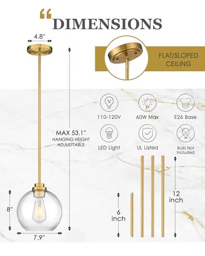 Adjustable Height: Measuring 7.9"L x 7.9"W x 53,1"H, the kitchen pendant lighting over island include 1 x 6" and 3 x 12" hard rods, allowing for adjustable height. They can be installed on flat or sloped ceilings, making them suitable for various situations