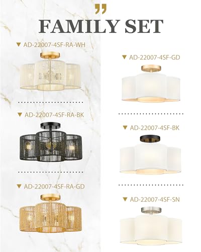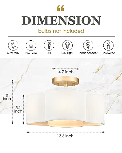 FARMHOUSE STYLE - Utilizing a fabric shade and a matte brass finish, the farmhouse semi flush mount ceiling light offers a farmhouse minimalist feel. These light fixtures ceiling mount can not only light up your whole room – but this is also a great way to show off your personal style.