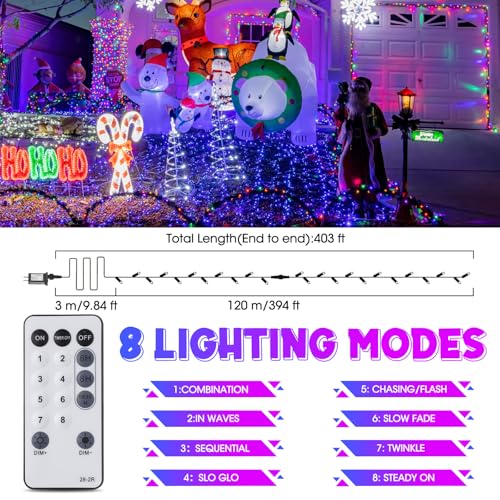 What You Will Receive: our LED light includes a LED Christmas lights with a total length of 403 feet, it is also a wonderful choice for wedding or party decoration, thus creating a festive Christmas romantic atmosphere