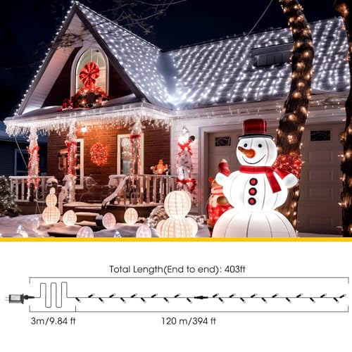 What You Will Receive: our LED light string set includes a LED Christmas lights with a total length of 403 feet, which comes with a 9.84 foot extension cord, emitting a steady, 1000 LED bulbs, as well as 1 piece remote control, 1 piece plug, the long length and number of bulbs meet your outdoor decoration needs, it is also a wonderful choice for wedding or party decoration, thus creating a festive Christmas romantic atmosphere