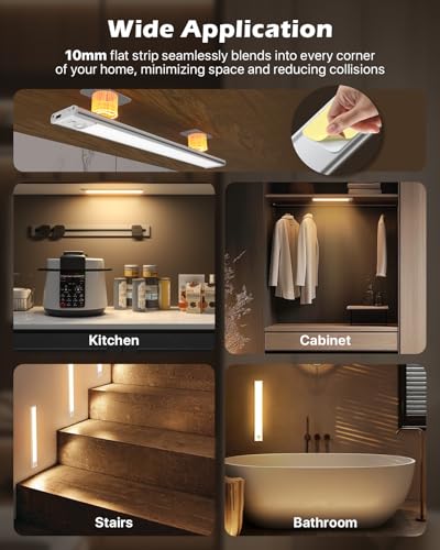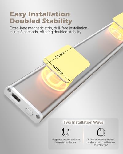 ?ADHESIVE MAGNETIC STRIP - EASY INSTALLATION? Our wireless under cabinet lighting feature 5cm extra-long magnetic strips for hassle-free, drill-free installation in just 3 seconds, providing double the stability. Installing these lights under kitchen cabinets wireless is a breeze, ideal for both DIY enthusiasts and beginners!