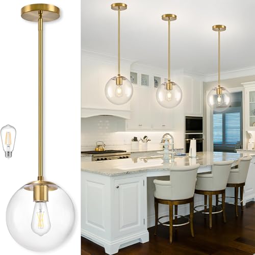 [ Wide Application ] This gold clear globe pendant light is simple, stylish and rustic in appearance, suitable for a variety of scenarios and a modern and sophisticated decorative piece. Suitable for kitchen island, dining room, living room, bedroom, kitchen, coffee bar, lobby, dining room and any space you like.