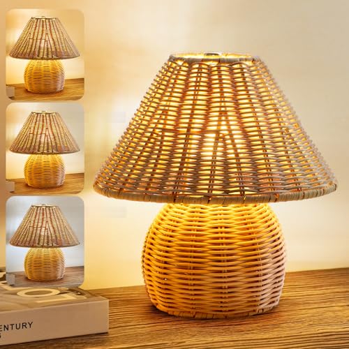 EXCELLENT HAND CRAFTSMANSHIP – Each Rattan Weave Table Lamp is meticulously crafted by skilled artisans. The combination of antique willow creates a visually captivating and unique design that showcases the intricacies of the rattan weave. The intricate weaving and textures create a visually stunning masterpiece (lamp shade diameter: 8.66 inches, overall height: 10.6 inches). Please note: Due to the handmade nature of this product, slight variations in size may occur