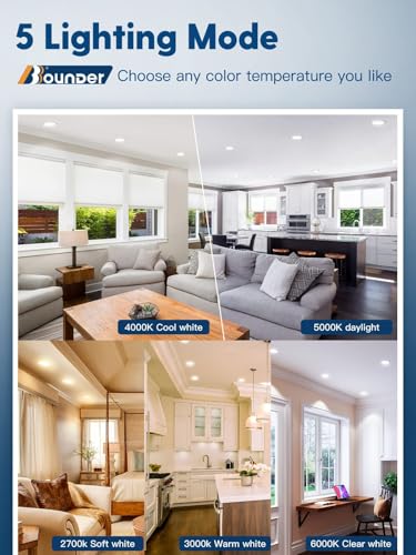 ?Personalized Ambience? The 5/6 inch LED recessed light offers 5 color temperature options, from warm white to cool daylight, so you can customize the retrofit downlight to match your room's mood and style with ease. Also you can adjust the brightness of the recessed lights from 10% to 100% according to different time and occasion with most compatible dimmers .