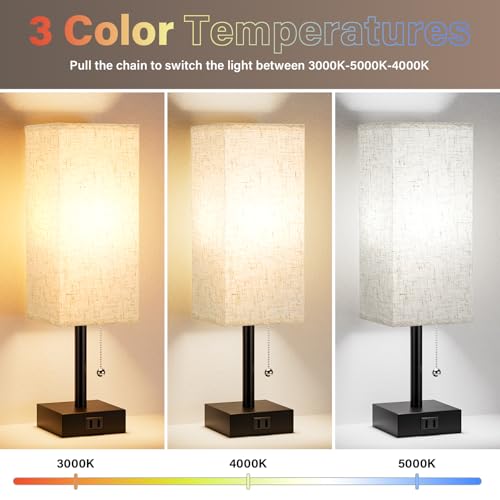 1. 3-Color Temperature Bedside Lamps: The small bed side lamp for night stands features with chic pull-chain to make quick changes to 3 different level brightness (Warm White-3000K, Nature White-4000K, Daylight White-5000K ). You can switch the light tailored to your needs. Warm white for cozy atmosphere, daylight white for work/study. Simply give the string a little tug when you want the nightstand lamp On/Off, brighter/dimmer