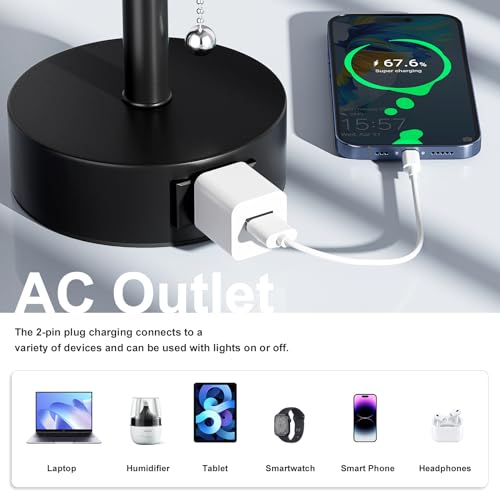 Bedside Lamps Set with Practical AC Outlet - This modern bedroom lamps kit provides a convenient AC outlet that eliminates the need for additional power outlets, simplifies desktop wiring, and keeps your desk tidy. The two-pin plug is always available for connection to other devices, such as your cell phones, tablets, laptops, humidifiers, smart watch and more, regardless of whether the matching bed lamp is on or off. This compact night lamp is ideal for small office or study environments