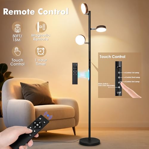 ?Remote and Touch Dual Switch?: A magnetic remote control(10m/33ft effective range) and touch panel allow for easy adjustment—whether you’re using the remote from the sofa or touching the button on the lamp pole. The remote also attaches magnetically to the lamp body for convenient storage, eliminating the hassle of searching for the remote