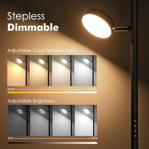 ?Stepless Dimmable & Color Temperatures Adjustable?: This tall lamp offers stepless dimming (10%-100%) and 4 color temperatures (3000K-6000K), letting you switch effortlessly between warm and cool light. Warm light for parties or relaxing at home, or brighter, cooler light when focusing on tasks
