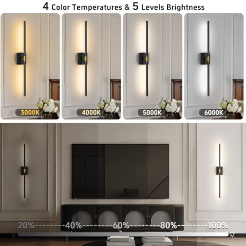 ?4CCT Black Battery Operated Wall Sconce?Experience smooth dimming from 10% to 100% brightness (30LM to 250LM) and 4 adjustable color temperatures (3000K to 6000K). This versatile wall sconce provides glare-free, comfortable lighting, perfect for any space, and operates on batteries for convenience