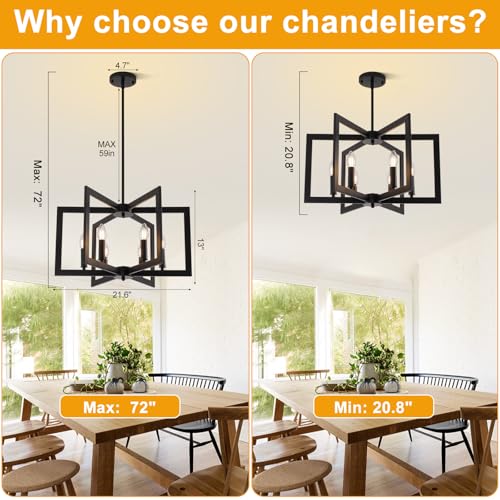 Modern Industrial Style & Design - Black chandelier is meticulously crafted by highly skilled craftsmen. Its consists of a black metal frame with a minimalist silhouette, which better balances aesthetics and functionality. The unique appearance gives a stylish and modern look that leaves a lasting impression.