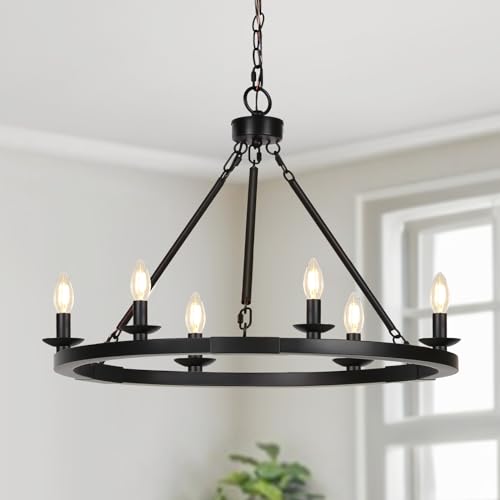 Modern & Farmhouse Chandelier: Designed with 6 candle style lights perched atop the wagon wheel frame, chandeliers for dining room is a great mix of rustic and contemporary style. Featuring 360 degree open work design, ceiling light fixture could provide sufficient lighting, suitable for gatherings of friends and family.