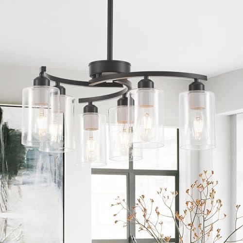 Elegant Design: This modern farmhouse chandelier features high-quality metal frame and glass lampshade. Through curved lamp arm design, perfectly blends industrial and delicacy style. Its downward facing lampshade isn't prone to dust accumulation, metal isn't easy to fade. It's suitable for various scenarios such as kitchen and living room, becoming the artistic focus of the space, combining practicality and high-end aesthetics