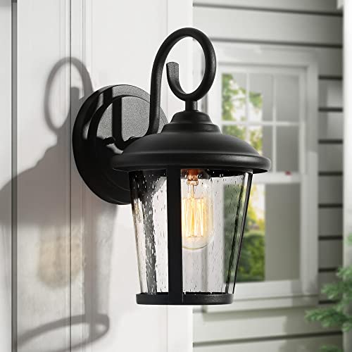 Black Outdoor Wall Light: This outdoor wall sconces boast a sleek cylindrical shape and a curved lamp arm that gives off a carriage lantern vibe, beautifully complementing the seeded glass shade. Not only does this black outdoor light fixture provide practical lighting, but it also adds a touch of charm to any outdoor area. Whether you want to spruce up your front porch or create a warm and inviting atmosphere on your patio, our outdoor wall light fixtures are the perfect solution. Installing the porch light outdoor wall is the first step towards creating an enchanting outdoor space that you and your visitors will adore.
