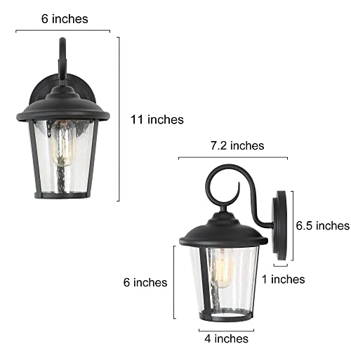 Wide Application--The exterior wall sconce size is 6" L x 7.2" W x 11" H. The canopy size is 6.5" D x 1" H, which can cover the standard junction box. This outdoor wall light fixture fits perfectly in outdoor and indoor spaces like the porch, front door, garage, entryway, veranda, corridor, yards, etc.