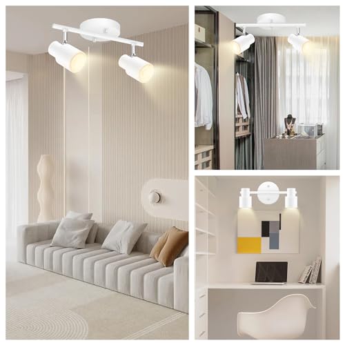 Wide Application?The 2 way ceiling track light for easy customizing your lighting needs, Overall size: (12'' L x 4.75'' W x 4.75'' H),You can adjust the light heads to different angles. The 2 track heads can be rotate 350° horizontally and 90°vertically.This light perfect addition to hallway,entry,porch,mudroom,stairwell,kitchen,closet,kids room,dining room,bedroom,living room, bathroom,bar,cafe,hotel and restaurant.