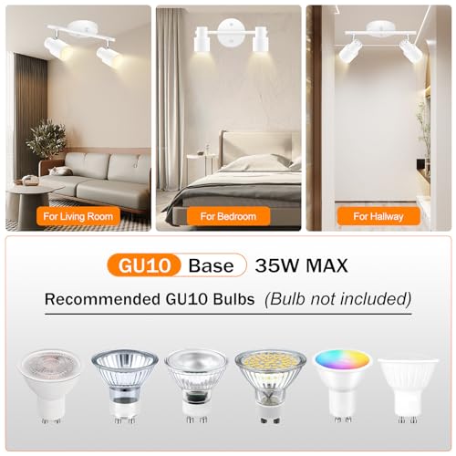 GU10 Socket Base;Complete track lighting fixture features a standard GU10 bulb socket (bulb not included).It is compatible with common LED or halogen bulbs,with a maximum power of 35W per GU10 bulb.Additionally,you have the option to choose dimmable bulbs or smart bulbs to cater to various lighting atmospheres.