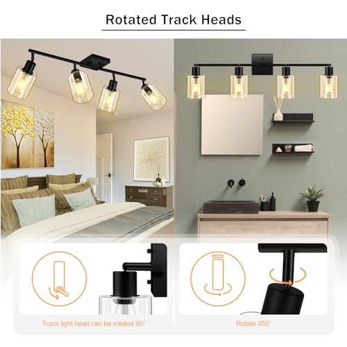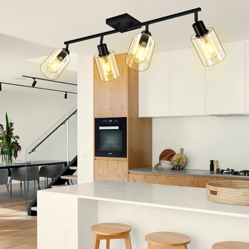Fashion Decor and Industrial Style: Boostarea LED 4 light track lighting kit with glass lampshade. This ceiling pendant light fits perfectly with any style decor from modern Industrial to the farmhouse which is a great idea for your Living Room, Kitchen, Dining Room, Bedroom, Kids Room, Hallway, Porch, Stairwell, Bar, Hotel and Restaurant, coffee shop, art display.