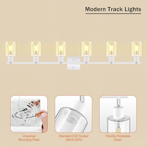 Wide Application: The 6 way ceiling track light for easy customizing your lighting needs, Overall size: 30'' L x 4.72'' W x 10.2'' H, canopy size: 4.7'' D x 0.98'' H. You can adjust the light heads to different angles. The 4 track heads can be rotate 350° horizontally and 90° vertically.