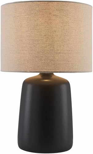 BoutiqueRugs Chiquimula Contemporary Geometric Ceramic Bedside Table Lamp for Bedroom Nightstand - Modern End Side Lighting for Living Room - Shade Linen - Black, Beige - 15" H