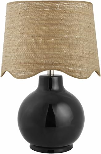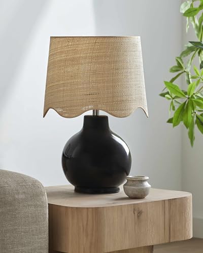 BoutiqueRugs Pojezerje Bohemian Ceramic Table Lamp for Bedroom, Bedside Nightstand - Decorative Boho Tabletop Lamp for Living Room - Rattan Shade - Black, Beige