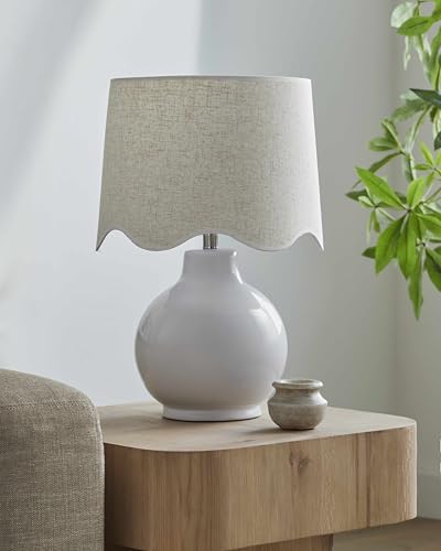 BoutiqueRugs Pojezerje Bohemian Ceramic Table Lamp for Bedroom, Bedside Nightstand - Decorative Boho Tabletop Lamp for Living Room - Rattan Shade - White, Cream