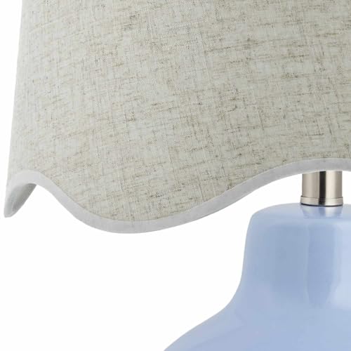 BoutiqueRugs Pojezerje Bohemian Ceramic Table Lamp for Bedroom, Bedside Nightstand - Decorative Boho Tabletop Lamp for Living Room - Rattan Shade - Light Blue, Cream