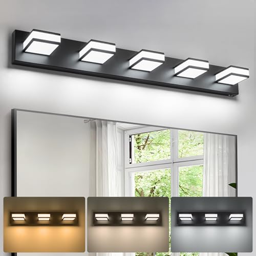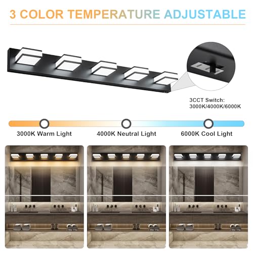 ?????3 Color Temperature Adjustable?Black bathroom light fixtures upgrade 3 color temperature dimming (3000K/4000K/6000K). Just swipe on one side of the box and feel free to choose warm white or cold white to satisfy your mood.