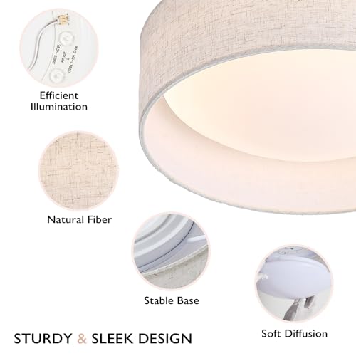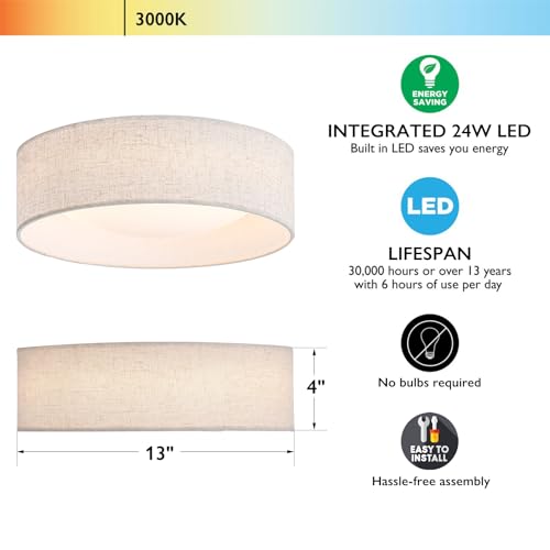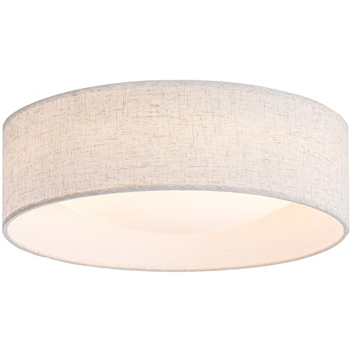 ?Natural Beige Linen Shade?The CALOKES 13-inch ceiling light is crafted from natural linen fabric, an eco-friendly and durable material. This fine texture of the shade resists warping or fading, maintaining its elegant appearance over time. Moreover, it provides a soft and natural light, creating a warm and comfortable atmosphere in any room.